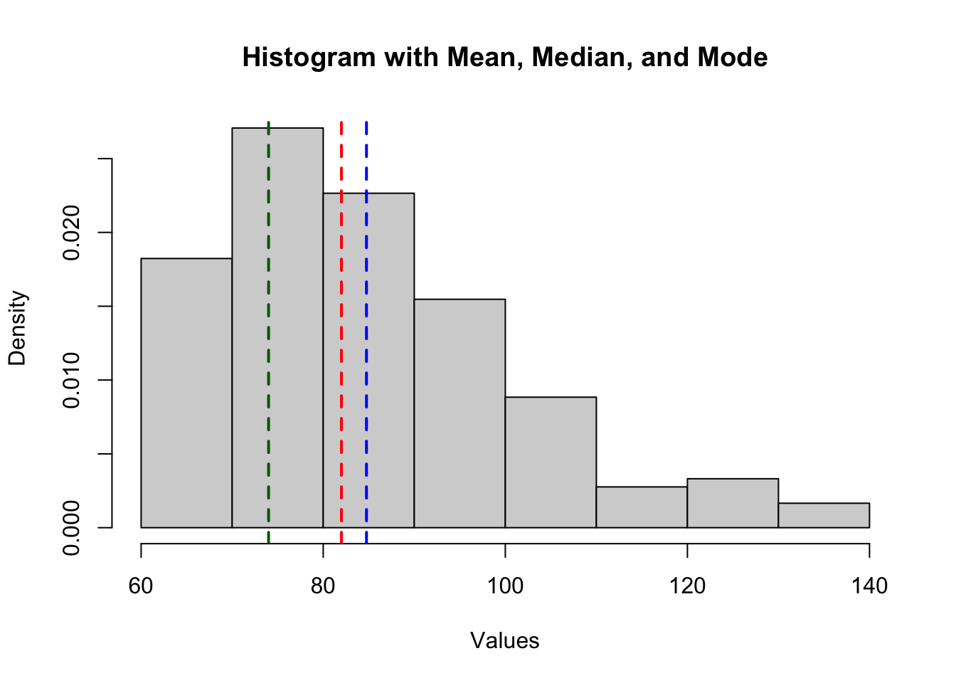 main = "Histogram with Mean, Median, and Mode",