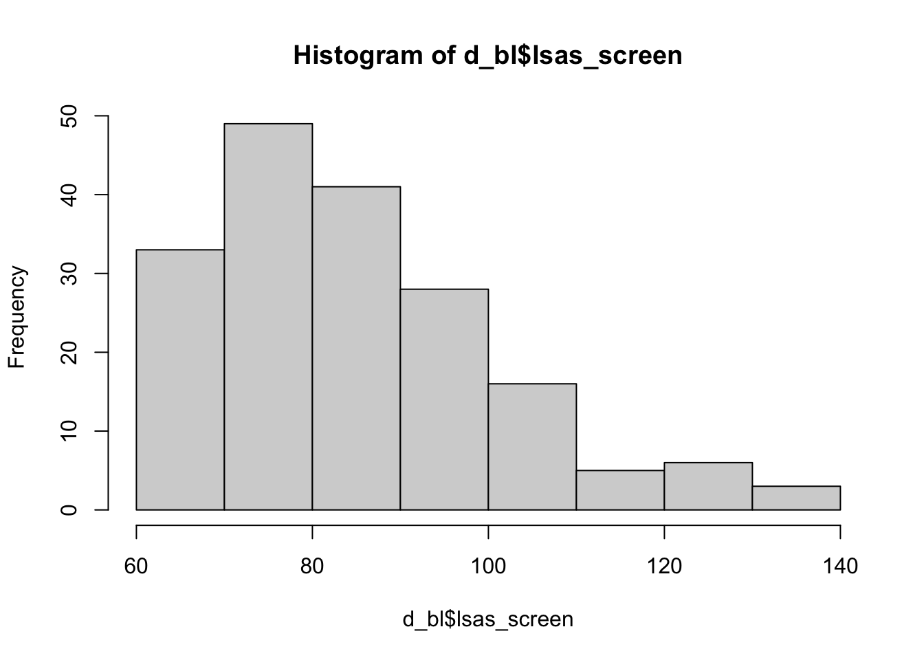 summary(d_bl$lsas_screen) Min. 1st Qu. Median Mean 3rd Qu. Max.