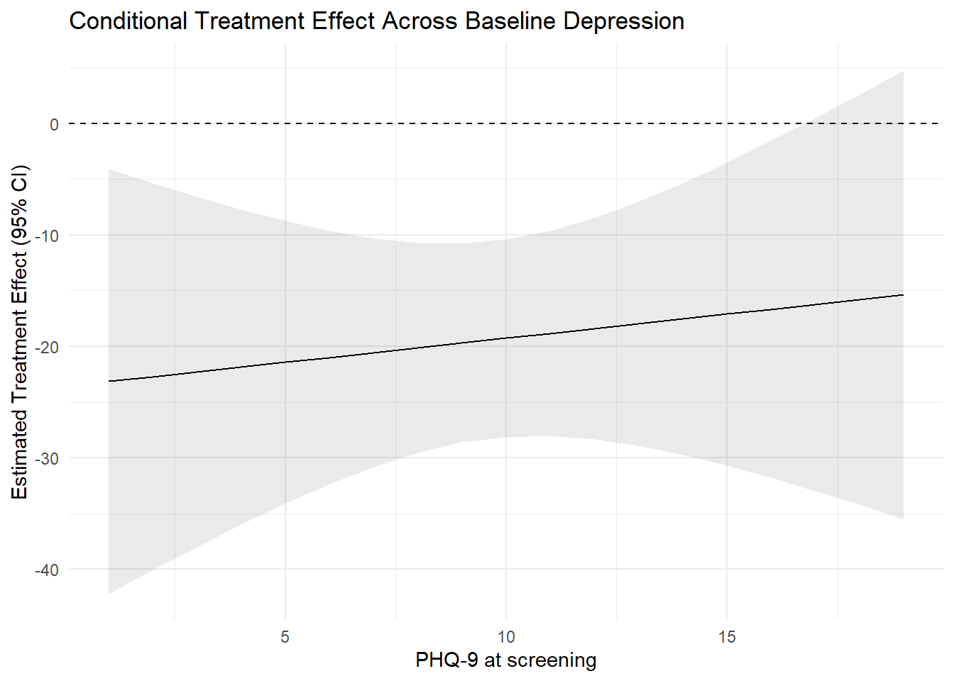 title = "Conditional Treatment Effect Across Baseline Depression"