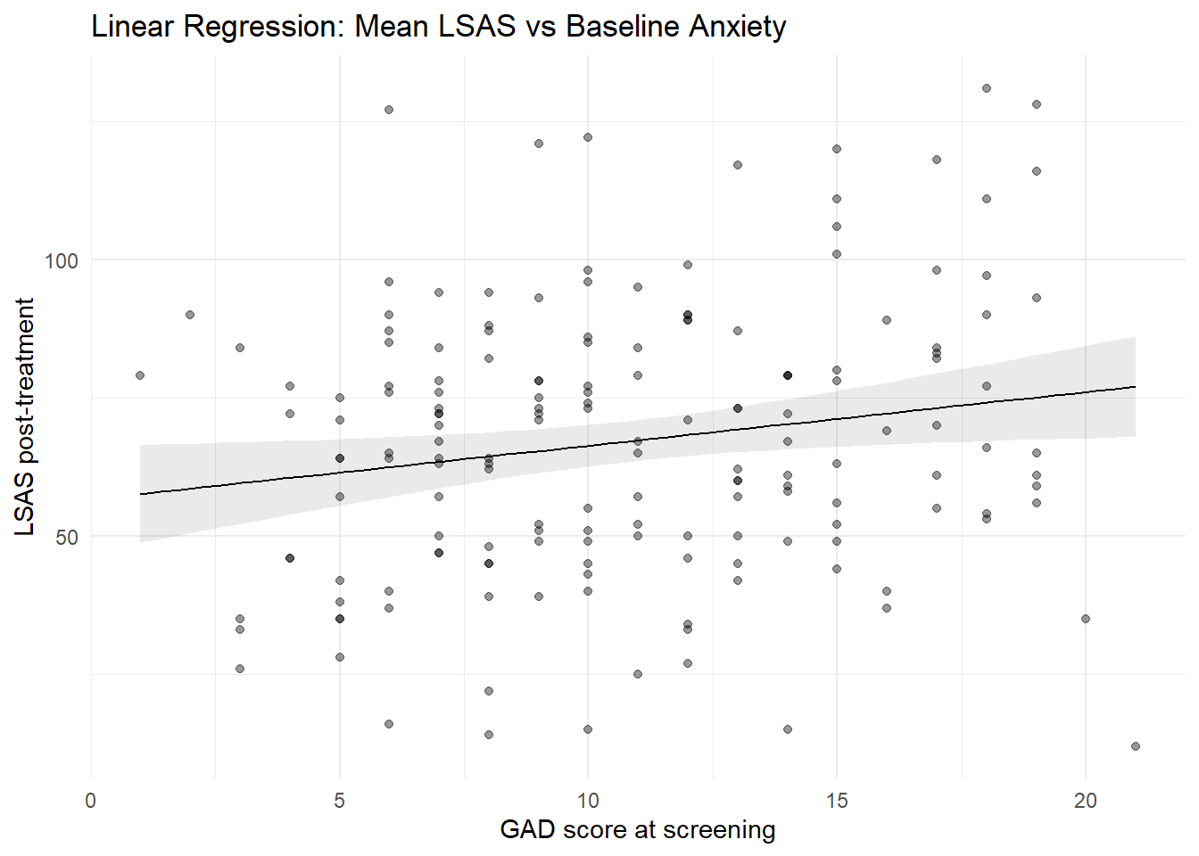 \[ \mathbb{E}(LSAS_{post,i} \mid gad\_screen_i) = \beta_0 + \beta_1\, gad\_screen_i \]